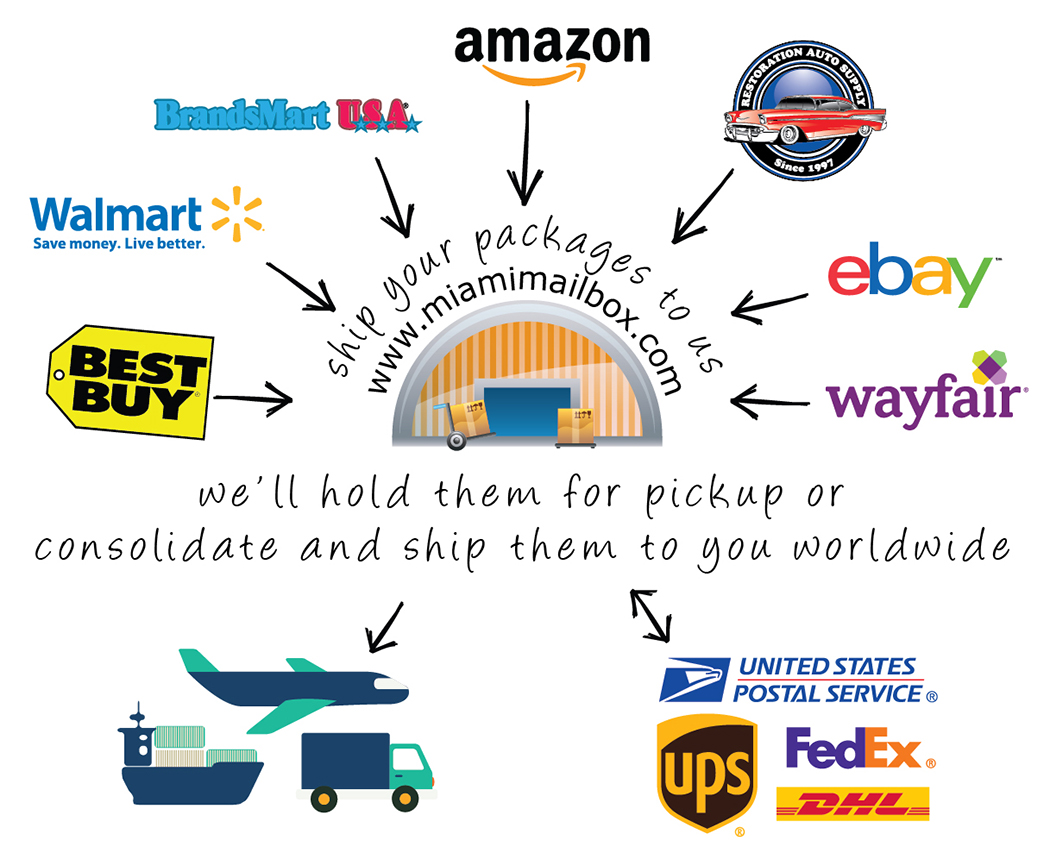 - Puede recoger sus paquetes cuando visite Miami Mailbox